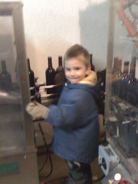 Cette semaine, nous avons 10 000 bouteilles à étiqueter pour la Chine, et comme certains le savent c’est les vacances scolaires. Donc mon fils de 5 ans a été embauché pour aider à cette tâche fastidieuse et répétitive.