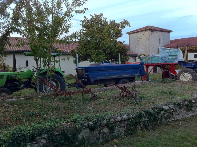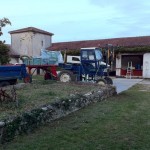 Tout est prêt, juste la désinfection de dernière minute dimanche. Les tracteurs sont OK, même les gyrophares fonctionnent !), le matériel de chai est OK, la pelouse est tondue l’atelier est rangé, bref le grand ménage d’automne, un touriste est même passé cet après midi, comme ça nous n’auront pas été les seuls à profiter de tout ce ménage !!!!